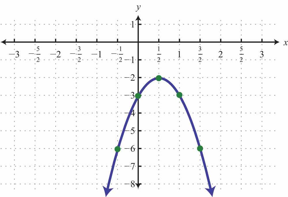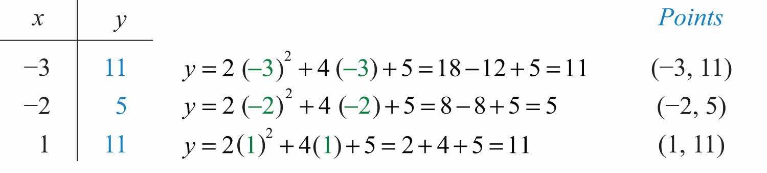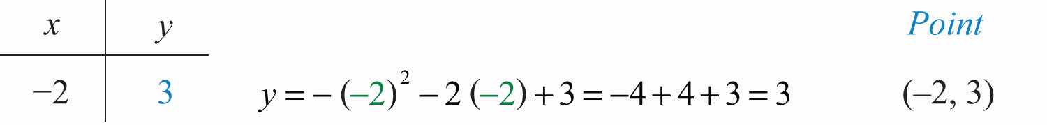 The vertex is (−1, 3). So far, we have only two points. To determine three more, choose some x-values on either side of the line of symmetry, x = −1. Here we choose x-values −3, −2, and 1.