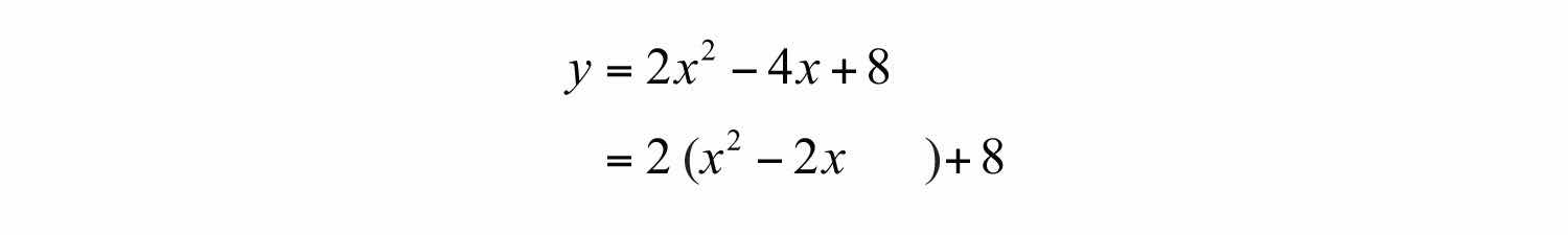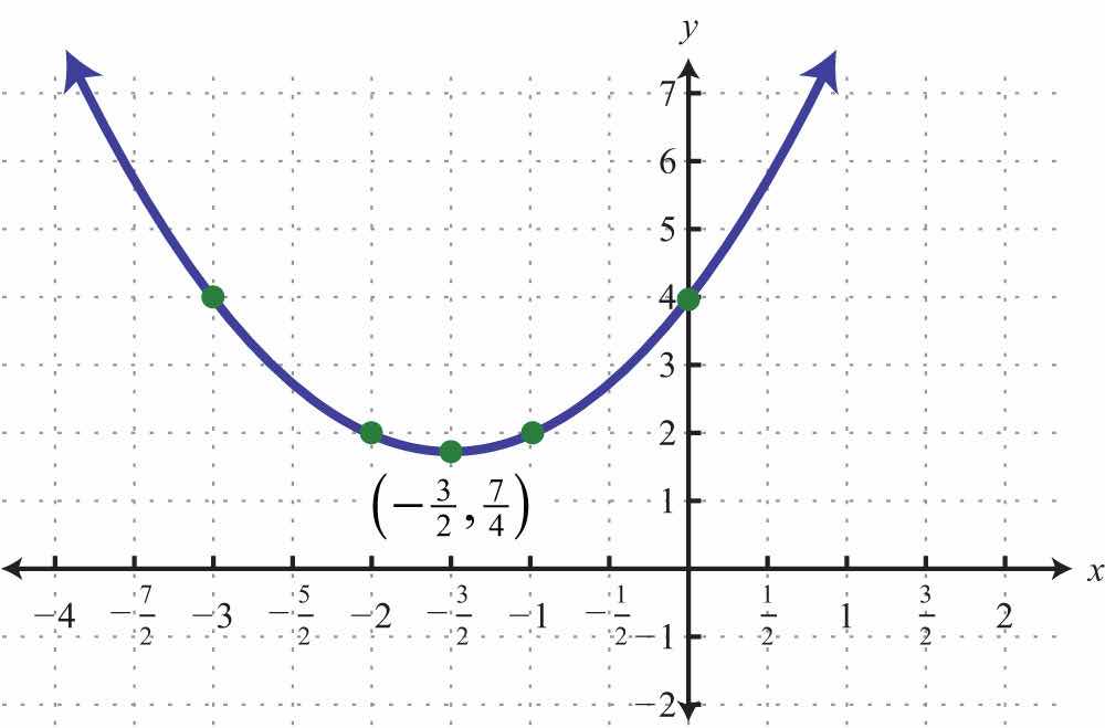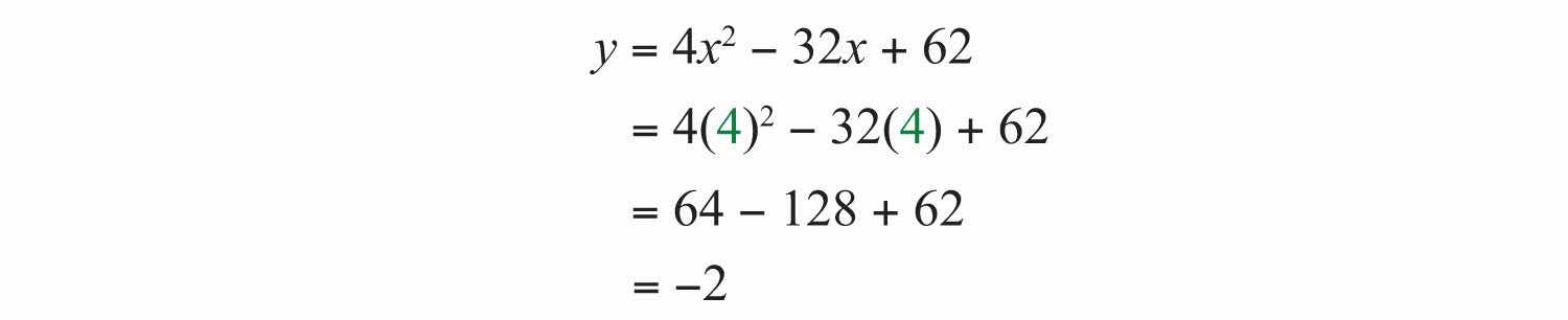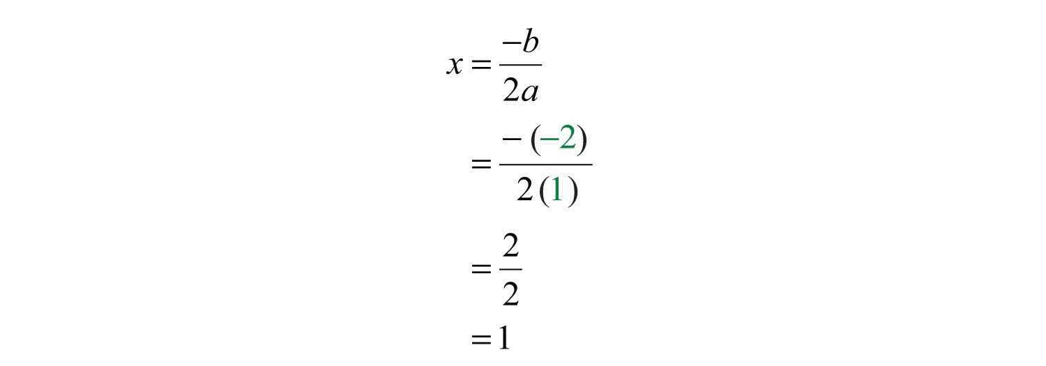 Solution: Since a = +4, the parabola opens upward and there is a minimum y-value. Begin by finding the x-value of the vertex.