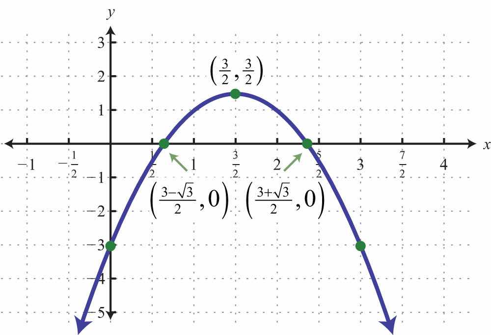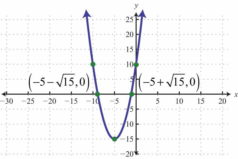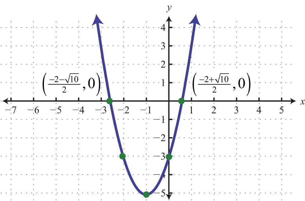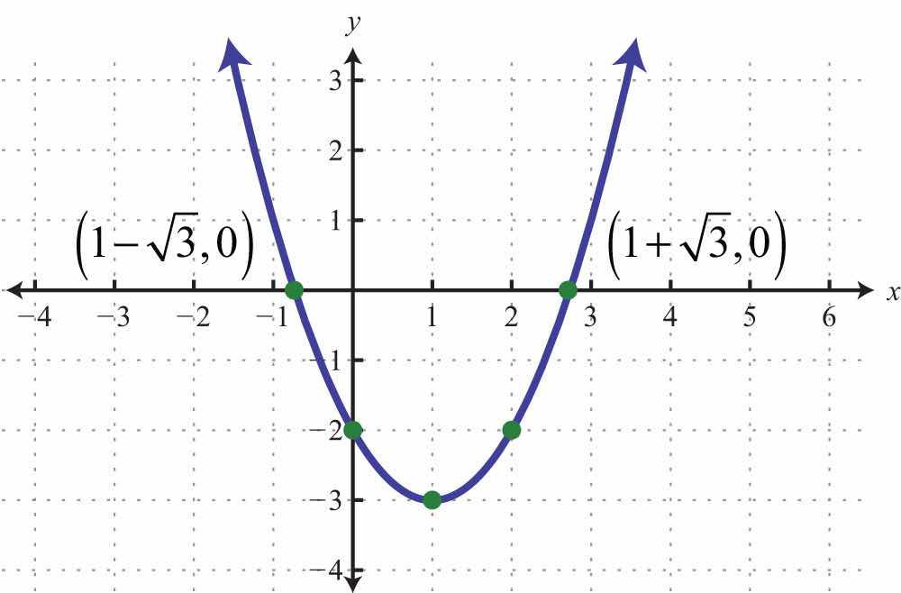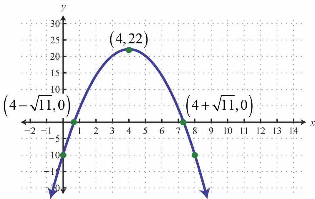 Use the approximate answers to place the ordered pair on the graph. However, we will present the exact x-intercepts on the graph. Next, find the vertex.