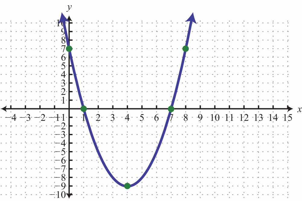 For any parabola, we will find the vertex and y-intercept. In addition, if the x-intercepts exist, then we will want to determine those as well. Guessing at the x-values of these special points is not practical; therefore, we will develop techniques that will facilitate finding them. Many of these techniques will be used extensively as we progress in our study of algebra.