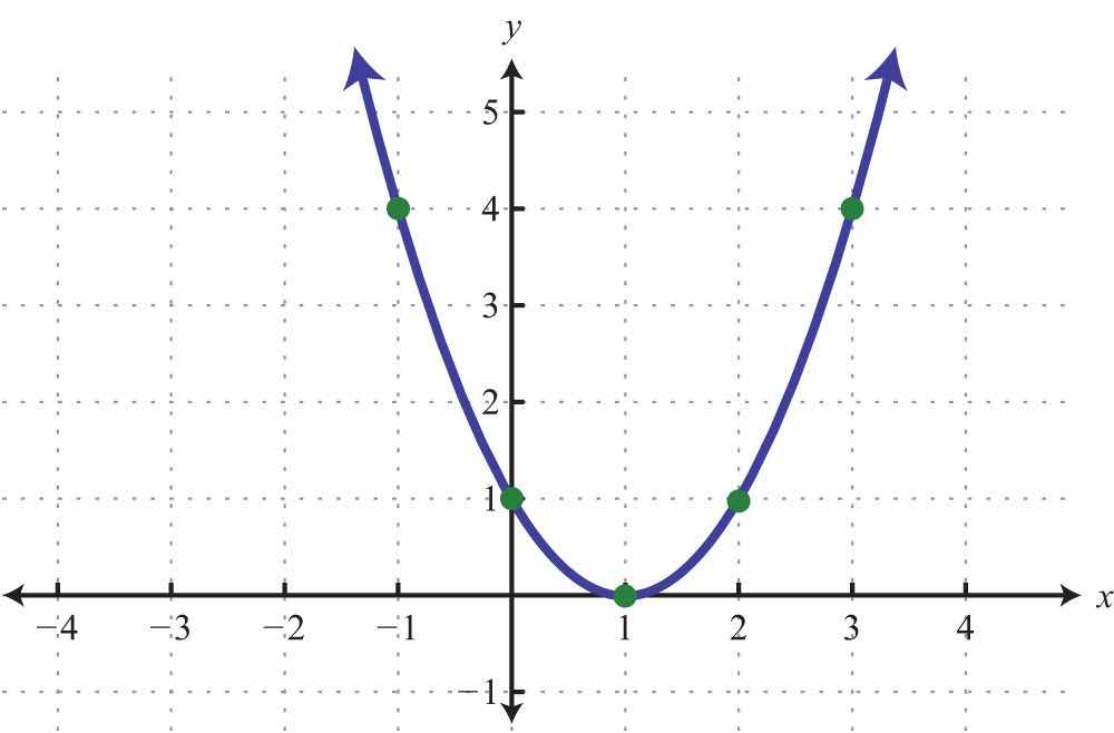Two points determine any line. However, since a parabola is curved, we should find more than two points. In this text, we will determine at least five points as a means to produce an acceptable sketch. To begin, we graph our first parabola by plotting points. Given a quadratic equation of the form , x is the independent variable and y is the dependent variable. Choose some values for x and then determine the corresponding y-values. Then plot the points and sketch the graph.