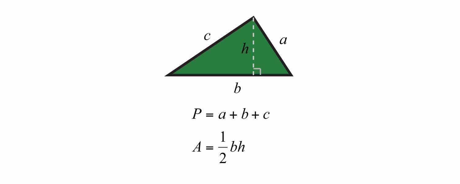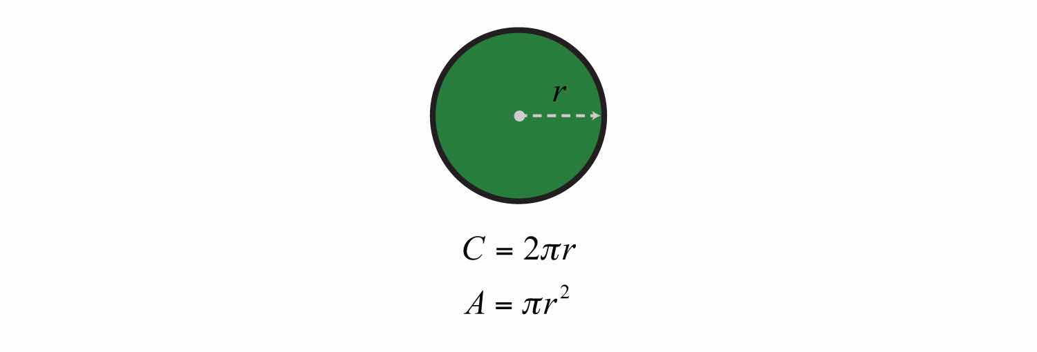 Area (A) is measured in square units, perimeter (P) is measured in units, and circumference (C) is measured in units.