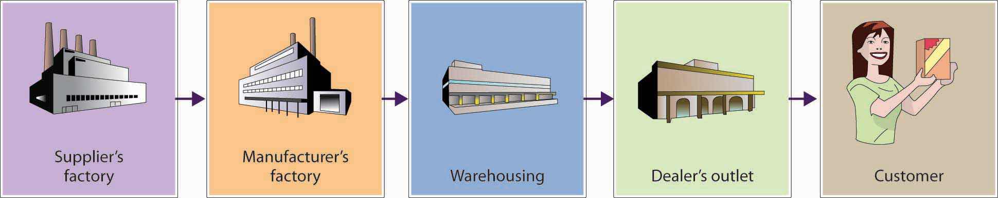 Wal-Mart, for example, maintains forty regional U.S. distribution centers at which it receives goods purchased from suppliers, sorts them, and distributes them to 4,400 stores, superstores, and Sam’s Clubs around the country.Wikipedia, s.v. “Walmart,” accessed October 19, 2011, http://en.wikipedia.org/wiki/Walmart#Walmart_Stores_U.S. Its efficiency in moving goods to its stores is a major factor in Wal-Mart’s ability to satisfy customer needs. How major? “The misconception,” says one senior executive “is that we’re in the retail business, but in reality, we’re in the distribution business.”Andres Lillo, “Wal-Mart Gains Strength from Distribution Chain,” Home Textiles Today, March 24, 2003, http://www.hometextilestoday.com/article/495437-Wal_Mart_gains_strength_from_distribution_chain.php (accessed May 21, 2006); “Logistics Careers,” Walmart, http://walmartstores.com/careers/7741.aspx (accessed October 15, 2011); Wikipedia, s.v. “Walmart,” accessed October 15, 2011, http://en.wikipedia.org/wiki/Walmart#Walmart_Stores_U.S.
