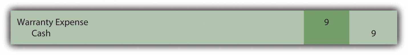 In any period in which a repair must be made, the expense is recognized as incurred because revenue from this warranty contract is also being reported. To illustrate, assume that on August 8, Year Two, a slight adjustment must be made to the television at a cost of $9. The product is under warranty so there is no charge to the customer for this service. The expense recognized below is matched with the Year Two revenue recognized above.