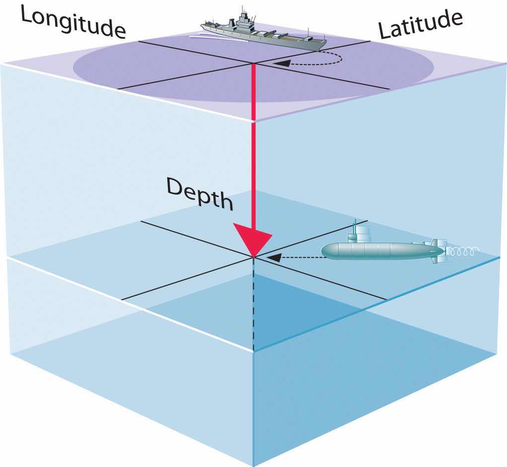 Figure 6.20 The Four Variables (Latitude, Longitude, Depth, and Time) Required to Precisely Locate an Object