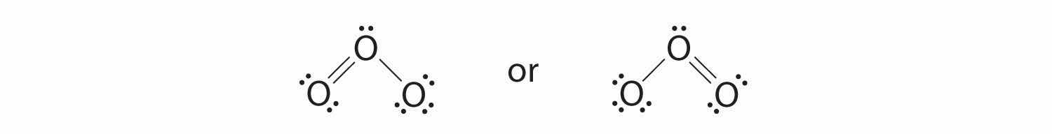 Which is correct? In fact, neither is correct. Both predict one O–O single bond and one O=O double bond. As you will learn in Section 8.8 "Properties of Covalent Bonds", if the bonds were of different types (one single and one double, for example), they would have different lengths. It turns out, however, that both O–O bond distances are identical, 127.2 pm, which is shorter than a typical O–O single bond (148 pm) and longer than the O=O double bond in O2 (120.7 pm).