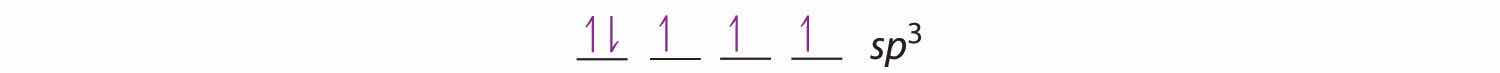 Looking at the 2s22p2 valence electron configuration of carbon, we might expect carbon to use its two unpaired 2p electrons to form compounds with only two covalent bonds. We know, however, that carbon typically forms compounds with four covalent bonds. We can explain this apparent discrepancy by the hybridization of the 2s orbital and the three 2p orbitals on carbon to give a set of four degenerate sp3 (“s-p-three” or “s-p-cubed”) hybrid orbitals, each with a single electron:
