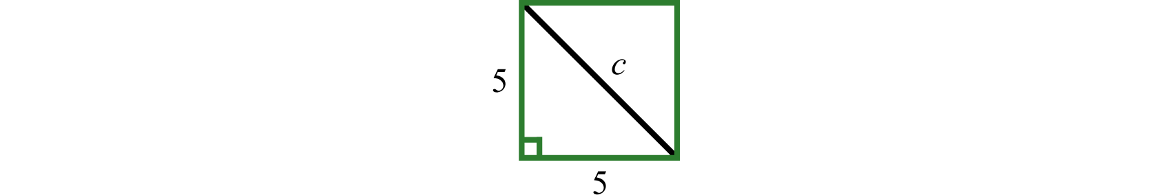 The diagonal of a square will form an isosceles right triangle where the two equal legs measure 5 units each.