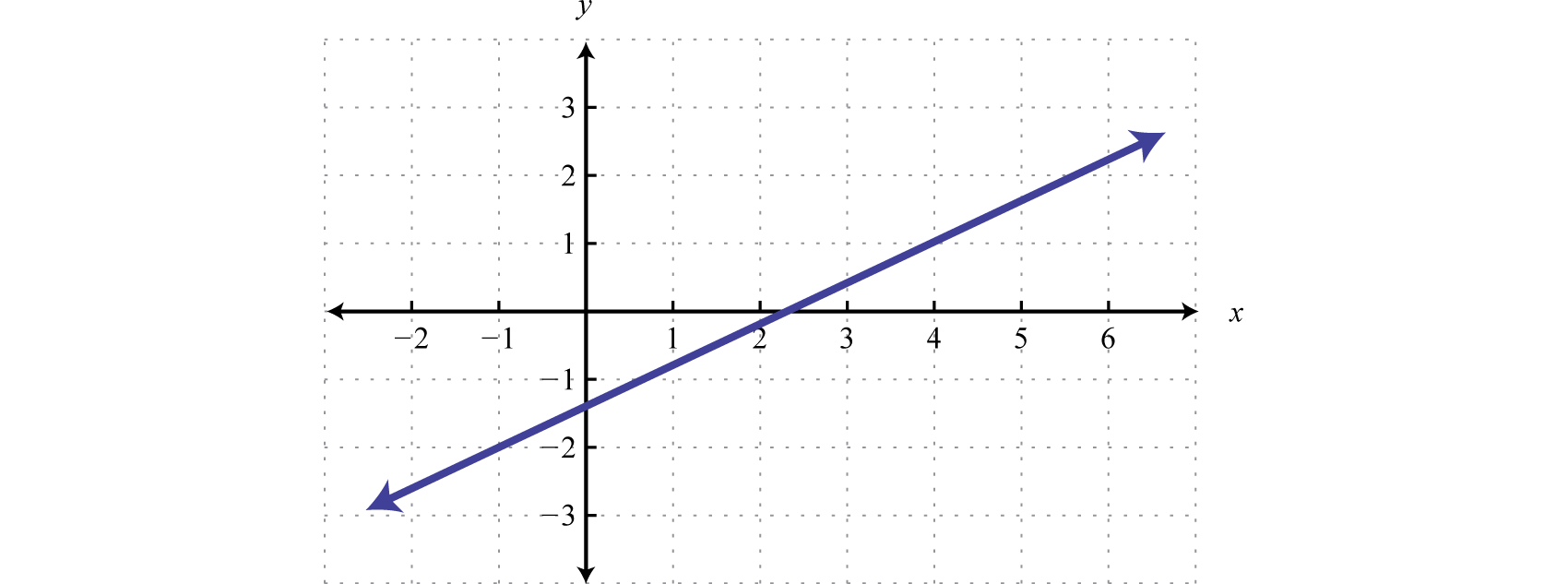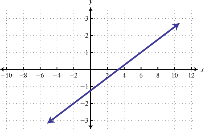 From the graph we can determine two points (−1, −2) and (4, 1). Use these points to read the slope from the graph. The rise is 3 units and the run is 5 units.