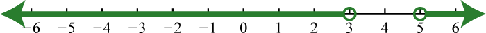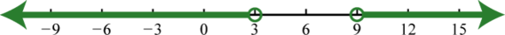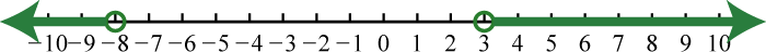 Certainly we can see that there are infinitely many solutions to bounded by −3 and 3. Express this solution set using set notation or interval notation as follows: