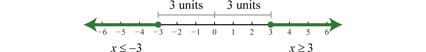 This inequality describes all numbers whose distance from the origin is greater than or equal to 3. On a graph, we can shade all such numbers.