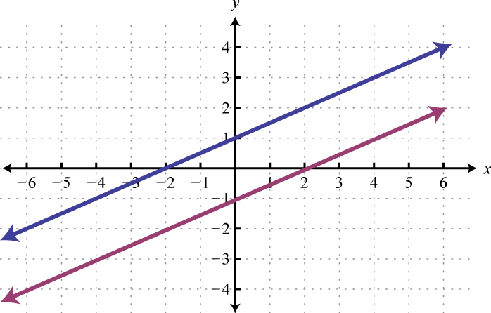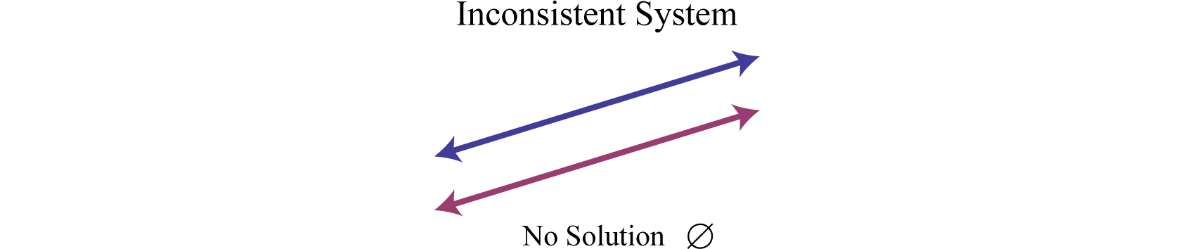 Sometimes the lines do not cross and there is no point of intersection. Such a system has no solution, Ø, and is called an inconsistent systemA system with no simultaneous solution..
