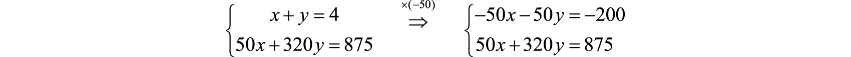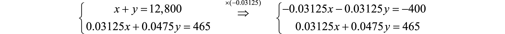Eliminate x by multiplying the first equation by −0.03125.