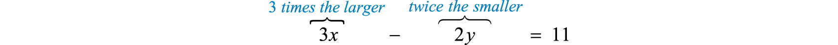 The difference of two integers is 11. When twice the larger is subtracted from 3 times the smaller, the result is 3. Find the integers.