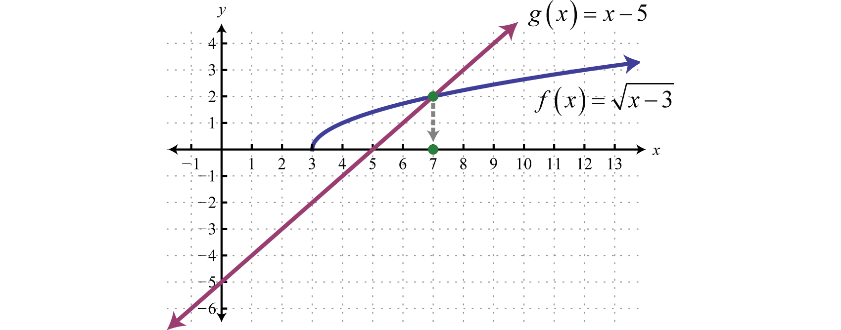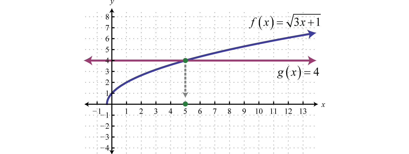 There is a geometric interpretation to the previous example. Graph the function defined by and determine where it intersects the graph defined by