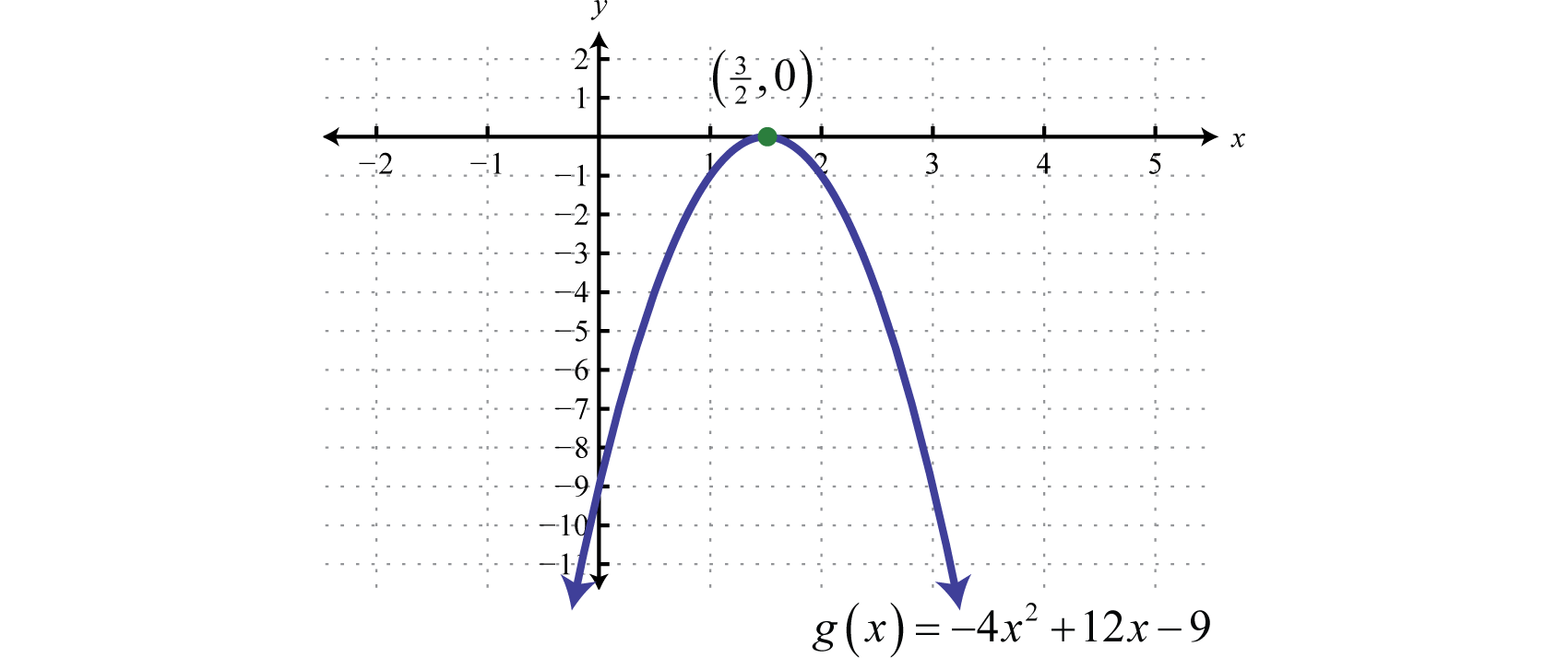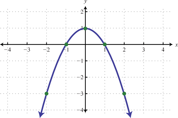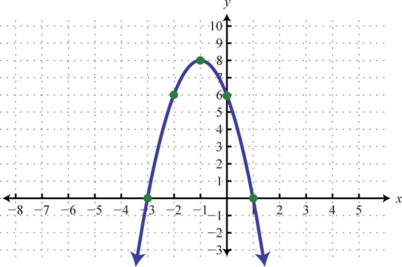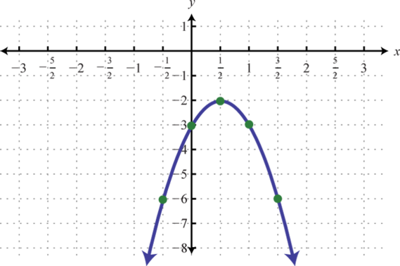 The parabola opens downward. In general, use the leading coefficient to determine if the parabola opens upward or downward. If the leading coefficient is negative, as in the previous example, then the parabola opens downward. If the leading coefficient is positive, then the parabola opens upward.