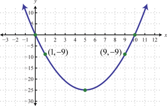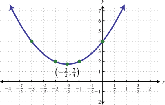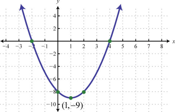 Generally three points determine a parabola. However, in this section we will find five points so that we can get a better approximation of the general shape. The steps for graphing a parabola are outlined in the following example.
