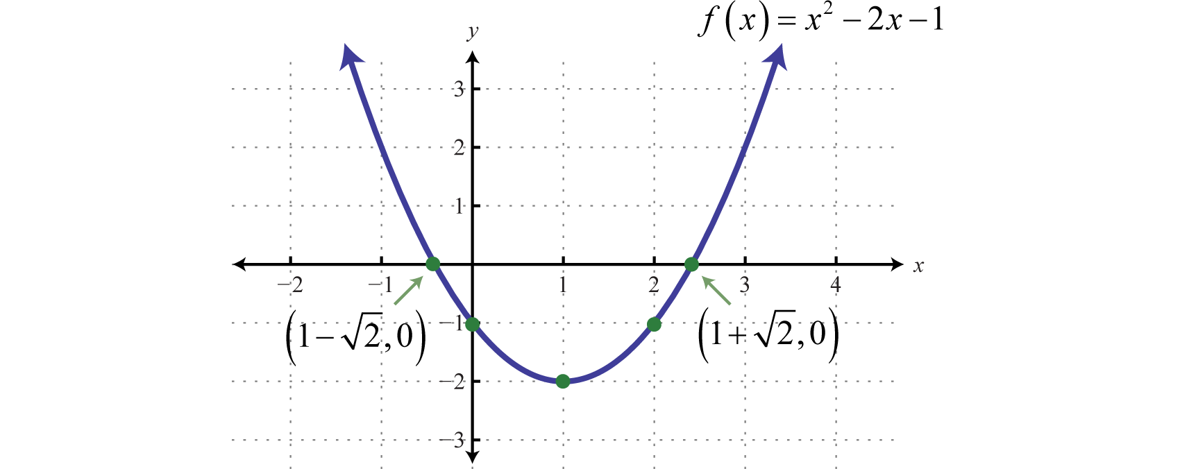 In this case, solve using the quadratic formula with a = 1, b = −2, and c = −1.