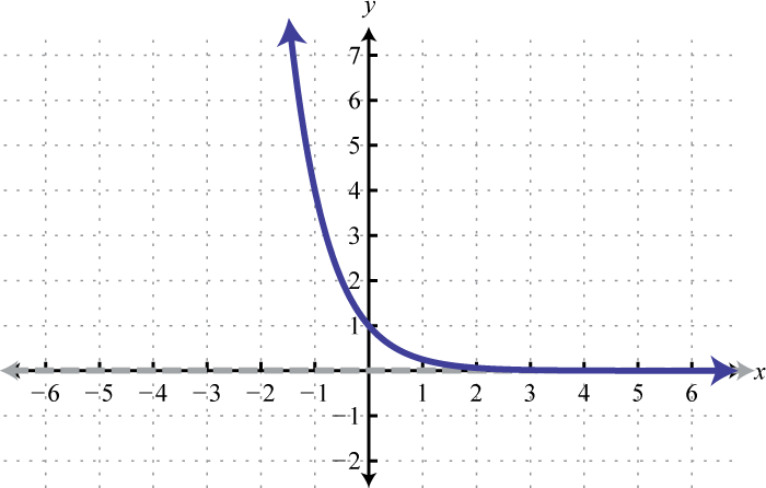 Note that the function is similar to the graph of The domain consists of all real numbers and the range consists of all positive real numbers. There is an asymptote at and a y-intercept at We can use the transformations to sketch the graph of more complicated exponential functions.