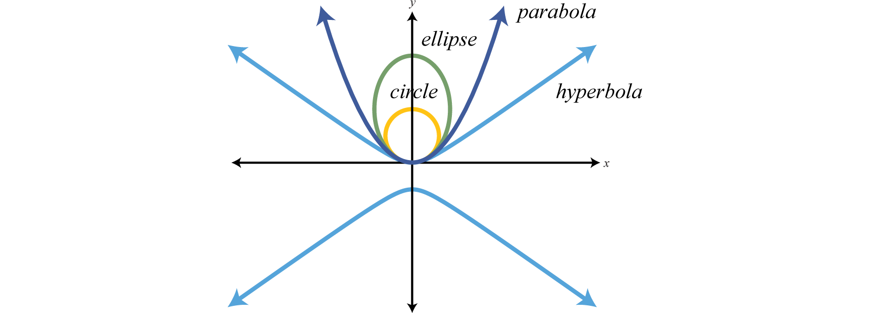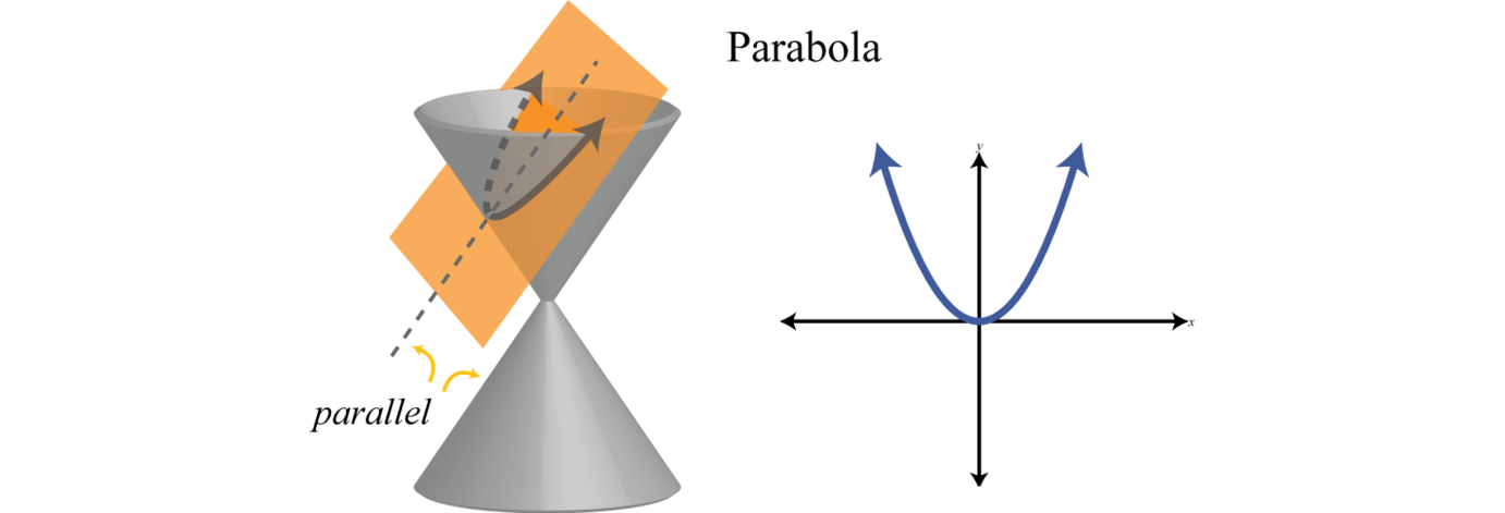 A conic sectionA curve obtained from the intersection of a right circular cone and a plane. is a curve obtained from the intersection of a right circular cone and a plane. The conic sections are the parabola, circle, ellipse, and hyperbola.