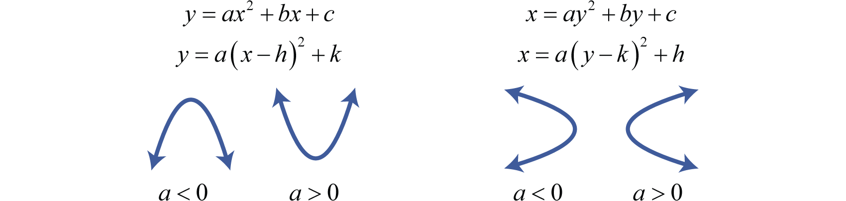 In all cases, the vertex is Take care to note the placement of h and k in each equation.