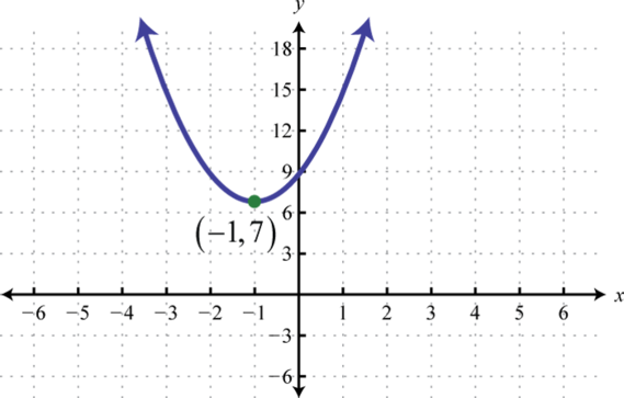 Recall that the graph of a quadratic function, a polynomial function of degree 2, is parabolic. We can write the equation of a parabola in general formThe equation of a parabola written in the form or , where a, b, and c are real numbers and or we can write the equation of a parabola in standard formThe equation of a parabola written in the form or :