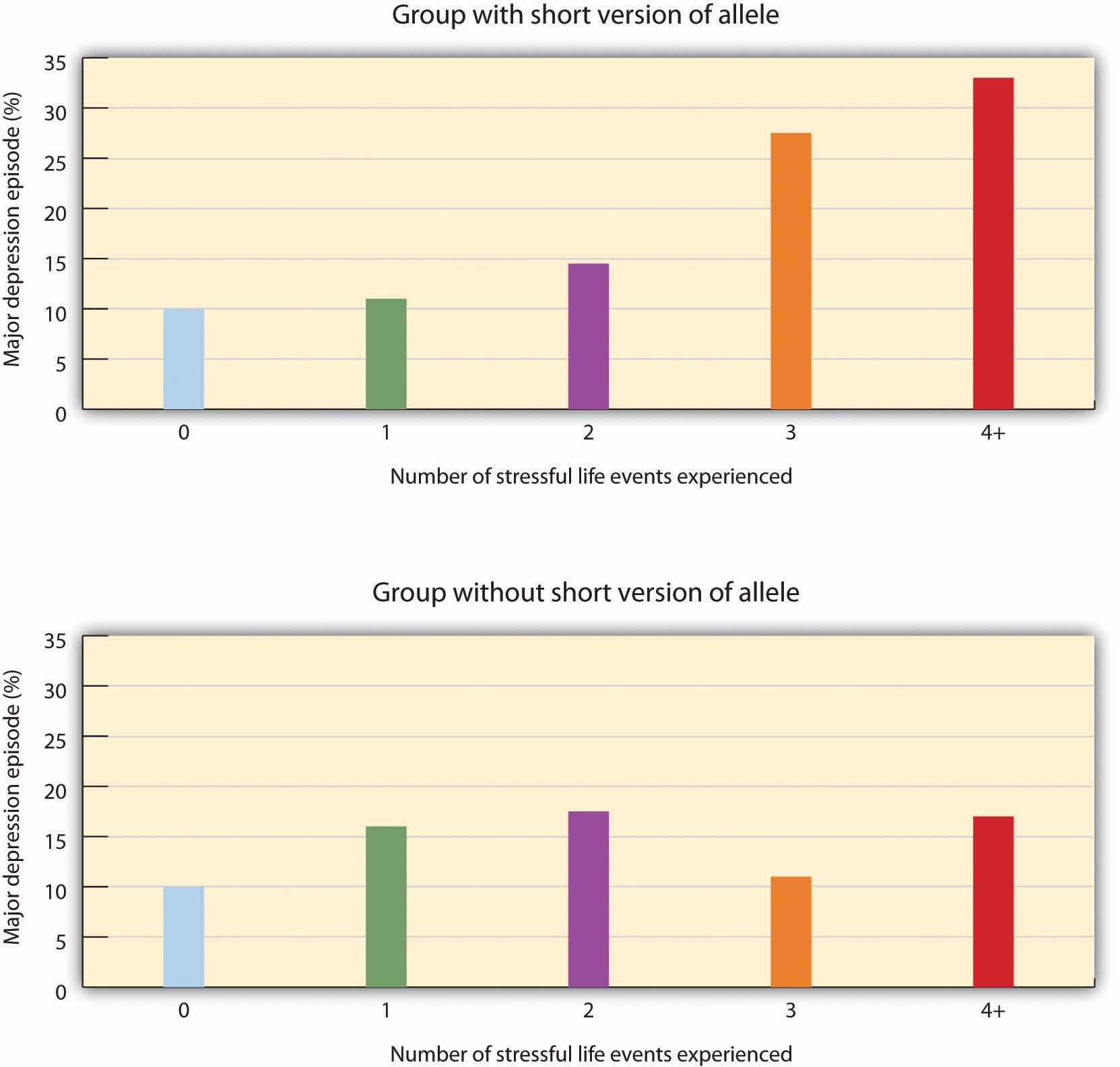 To consider one example, the psychological disorder of schizophrenia has a biological cause because it is known that there are patterns of genes that make a person vulnerable to the disorder (Gejman, Sanders, & Duan, 2010).Gejman, P., Sanders, A., & Duan, J. (2010). The role of genetics in the etiology of schizophrenia. Psychiatric Clinics of North America, 33(1), 35–66. doi:10.1016/j.psc.2009.12.003 But whether or not the person with a biological vulnerability experiences the disorder depends in large part on psychological factors such as how the individual responds to the stress he experiences, as well as social factors such as whether or not he is exposed to stressful environments in adolescence and whether or not he has support from people who care about him (Sawa & Snyder, 2002; Walker, Kestler, Bollini, & Hochman, 2004).Sawa, A., & Snyder, S. (2002). Schizophrenia: Diverse approaches to a complex disease. Science, 296(5568), 692–695. doi:10.1126/science.1070532; Walker, E., Kestler, L., Bollini, A., & Hochman, K. (2004). Schizophrenia: Etiology and course. Annual Review of Psychology, 55, 401–430. doi:10.1146/annurev.psych.55.090902.141950 Similarly, mood and anxiety disorders are caused in part by genetic factors such as hormones and neurotransmitters, in part by the individual’s particular thought patterns, and in part by the ways that other people in the social environment treat the person with the disorder. We will use the bio-psycho-social model as a framework for considering the causes and treatments of disorder.