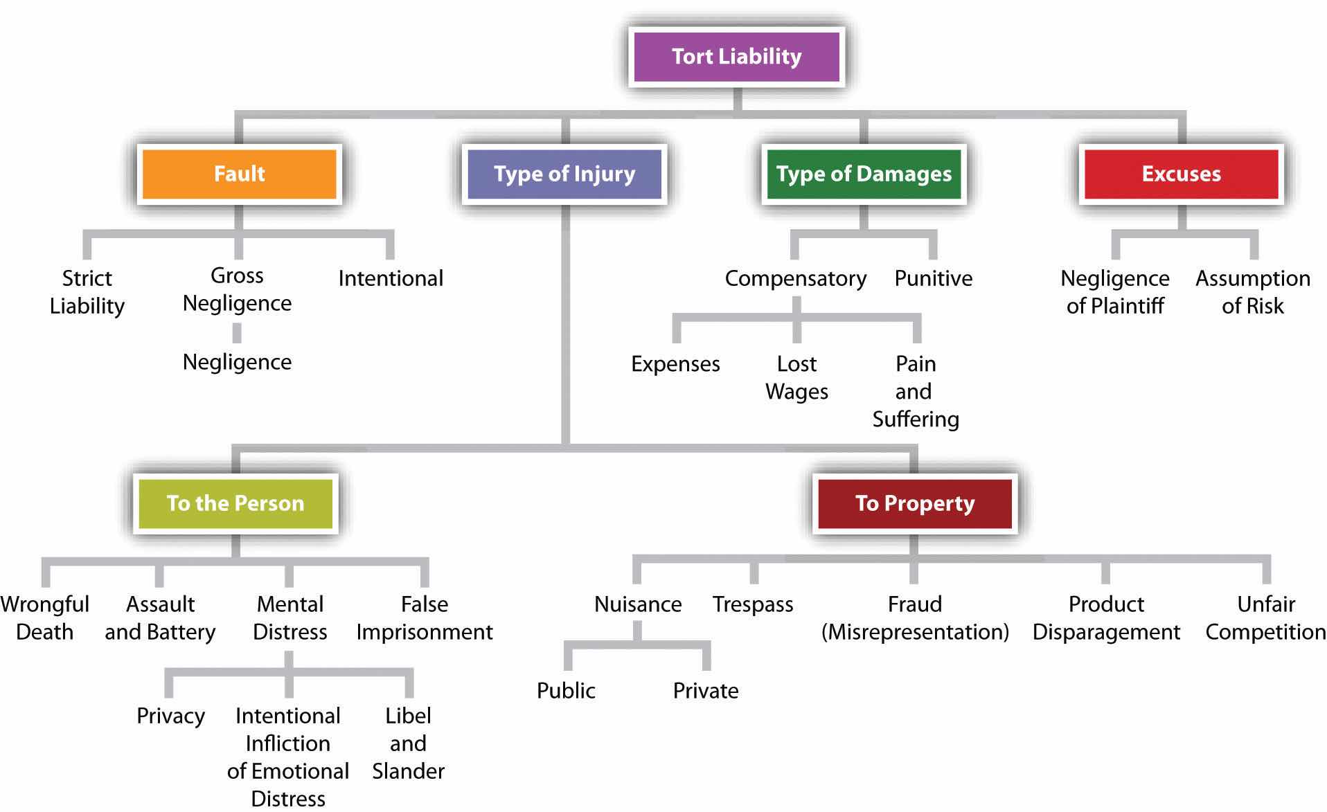 The analysis of most intentional torts is straightforward and parallels the substantive crimes already discussed in Chapter 6 "Criminal Law". When physical injury or damage to property is caused, there is rarely debate over liability if the plaintiff deliberately undertook to produce the harm. Certain other intentional torts are worth noting for their relevance to business.