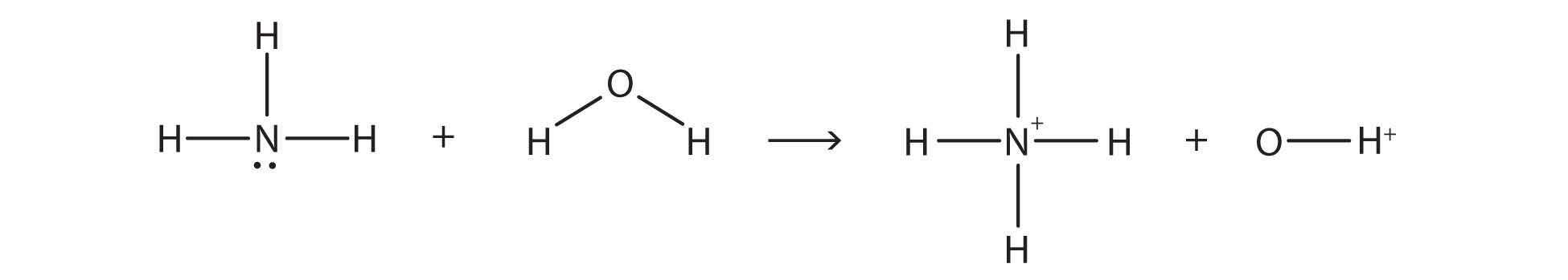 NH3(aq) + H+(aq) → NH4+(aq)while the NH4+(aq) ion can react with any OH− ions introduced by strong bases: