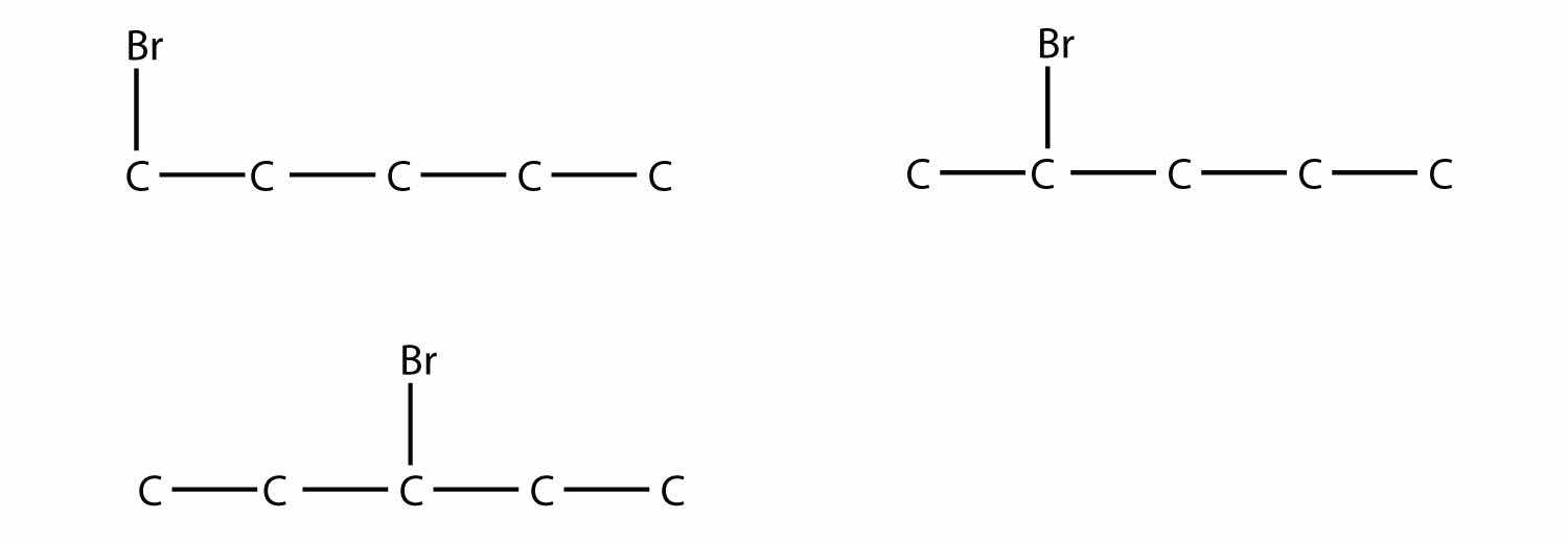 Draw the structures of all possible straight-chain isomers of bromopentane.