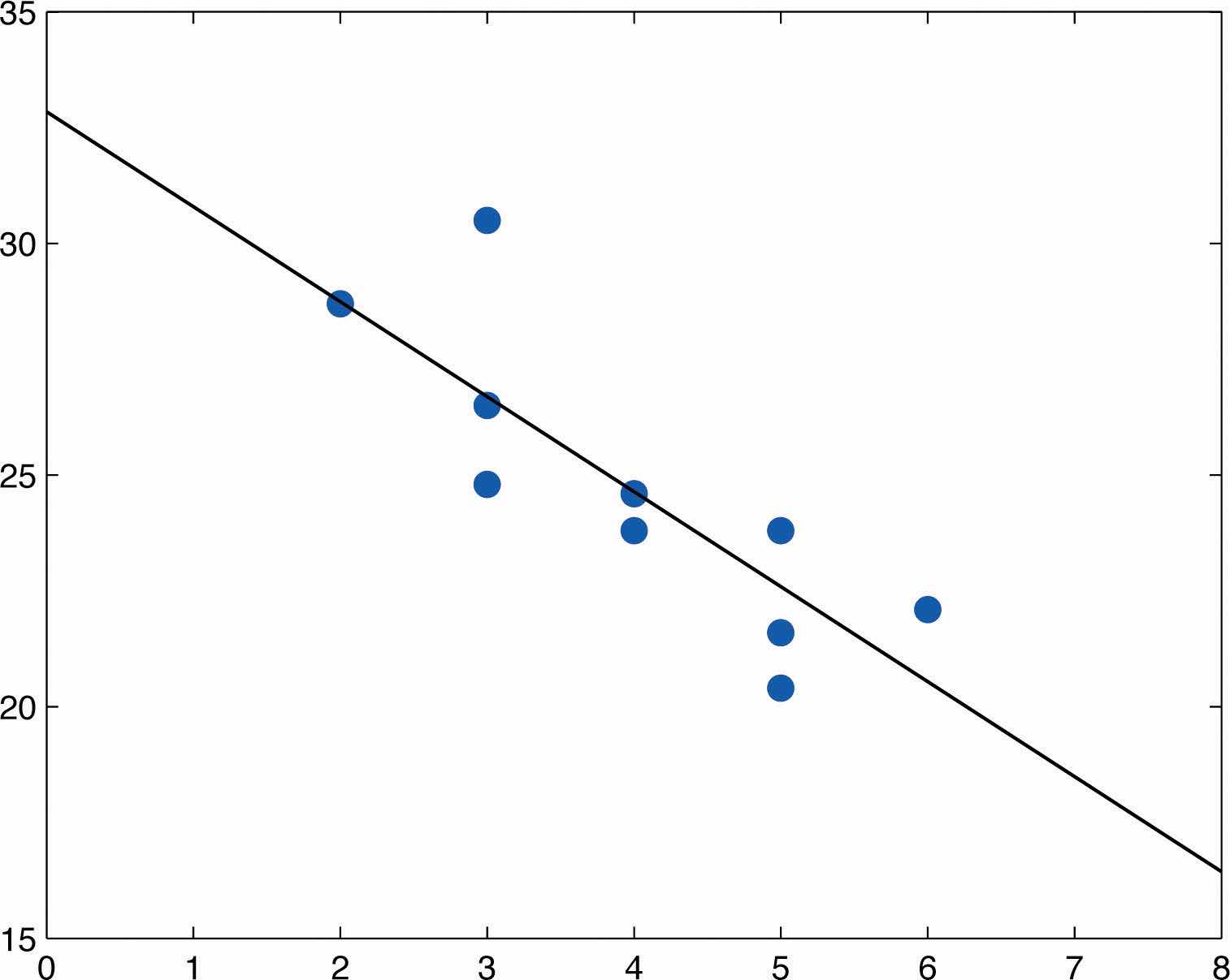 Once the scatter diagram of the data has been drawn and the model assumptions described in the previous sections at least visually verified (and perhaps the correlation coefficient r computed to quantitatively verify the linear trend), the next step in the analysis is to find the straight line that best fits the data. We will explain how to measure how well a straight line fits a collection of points by examining how well the line fits the data set