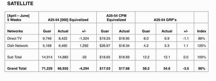 Satellite purchase was a strategic way for msnbc.com messaging to air on competitors’ networks. Dish Network exceeded purchased impressions.