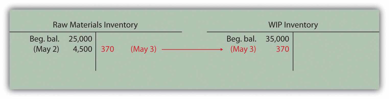 This flow of direct materials from one account to another is further illustrated in the T-accounts that follow. Assume the beginning balance for work-in-process inventory is $35,000.