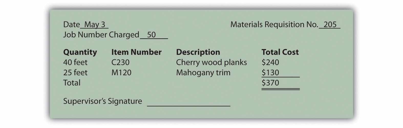 Figure 2.2 Materials Requisition Form for Custom Furniture Company