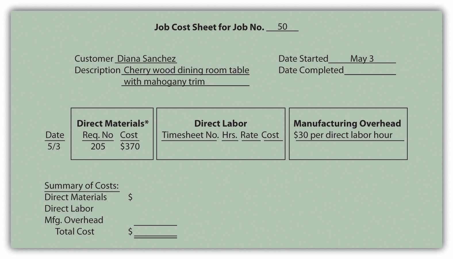 Figure 2.3 Job Cost Sheet for Custom Furniture Company