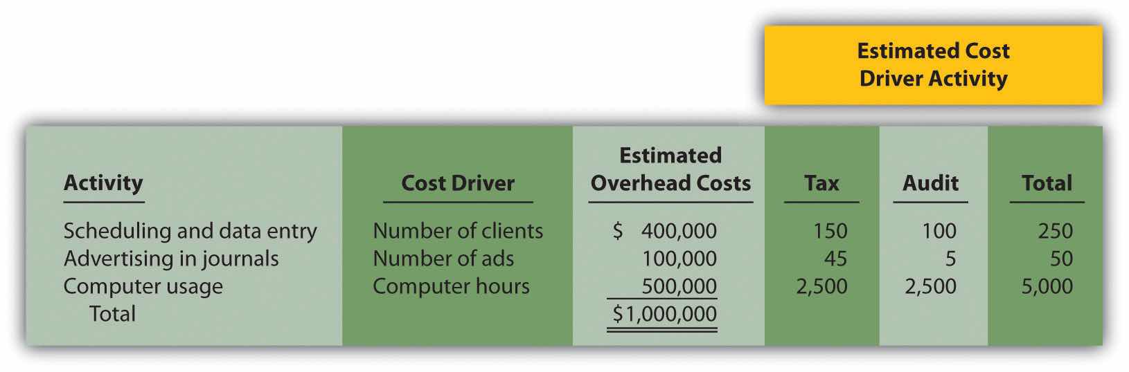 Notice that this information includes an estimate of the level of activity for each cost driver, which is needed to calculate a predetermined rate for each activity in step 4.