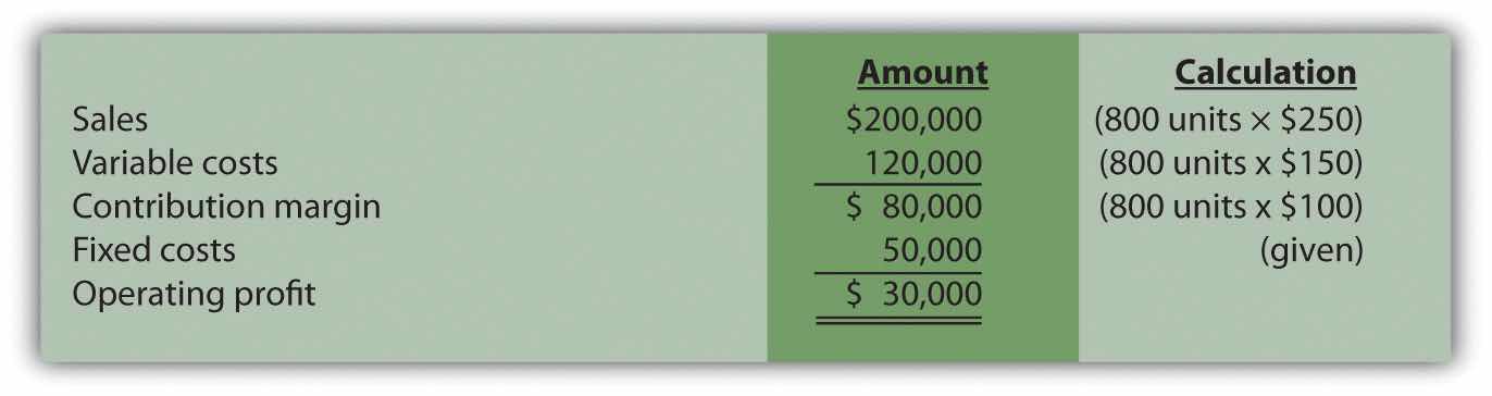 Thus Snowboard Company must produce and sell 800 snowboards to achieve $30,000 in profit. This answer is confirmed in the following contribution margin income statement: