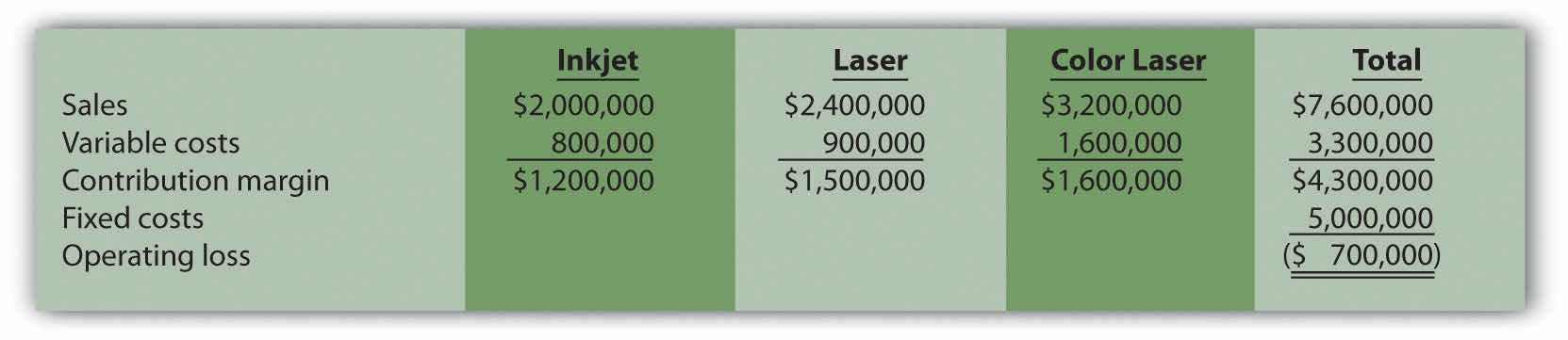 | Selling price per unit | $250 | $400 | $1,600 | |