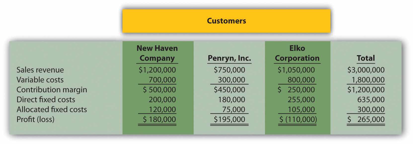 Answer: Instead of tracing revenues, variable costs, and fixed costs directly to product lines, we track this information by customer. Fixed costs that cannot be traced directly to customers are allocated to customers. Let’s look at an example for a company called Colony Landscape Maintenance to identify the similarities and differences between the two formats.