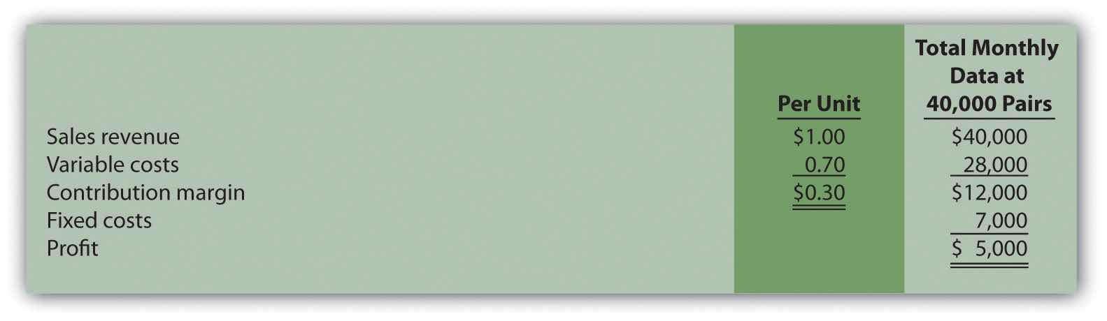 Special Order Decision: Operating with Idle Capacity. The following monthly financial data are for Sport Socks, Inc., a maker of socks for runners. Sport Socks makes and sells 40,000 pairs each month to regular customers.