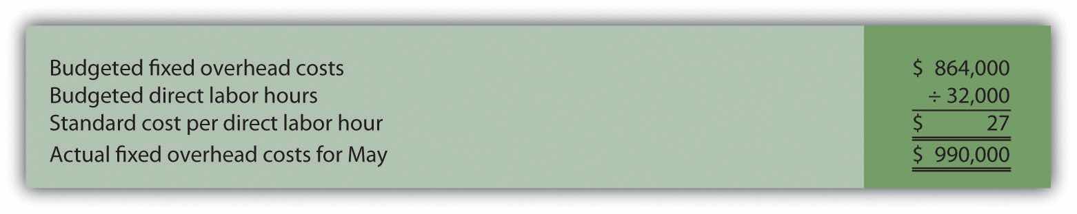 With regards to fixed manufacturing overhead, the company also applies these overhead costs to products based on direct labor hours. Fixed manufacturing overhead information for the month of May appears as follows.