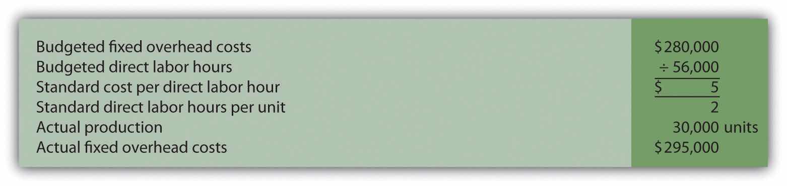 Calculate the fixed overhead spending variance and production volume variance using the format shown in Figure 10.13 "Fixed Manufacturing Overhead Variance Analysis for Jerry’s Ice Cream". Clearly label each variance as favorable or unfavorable.