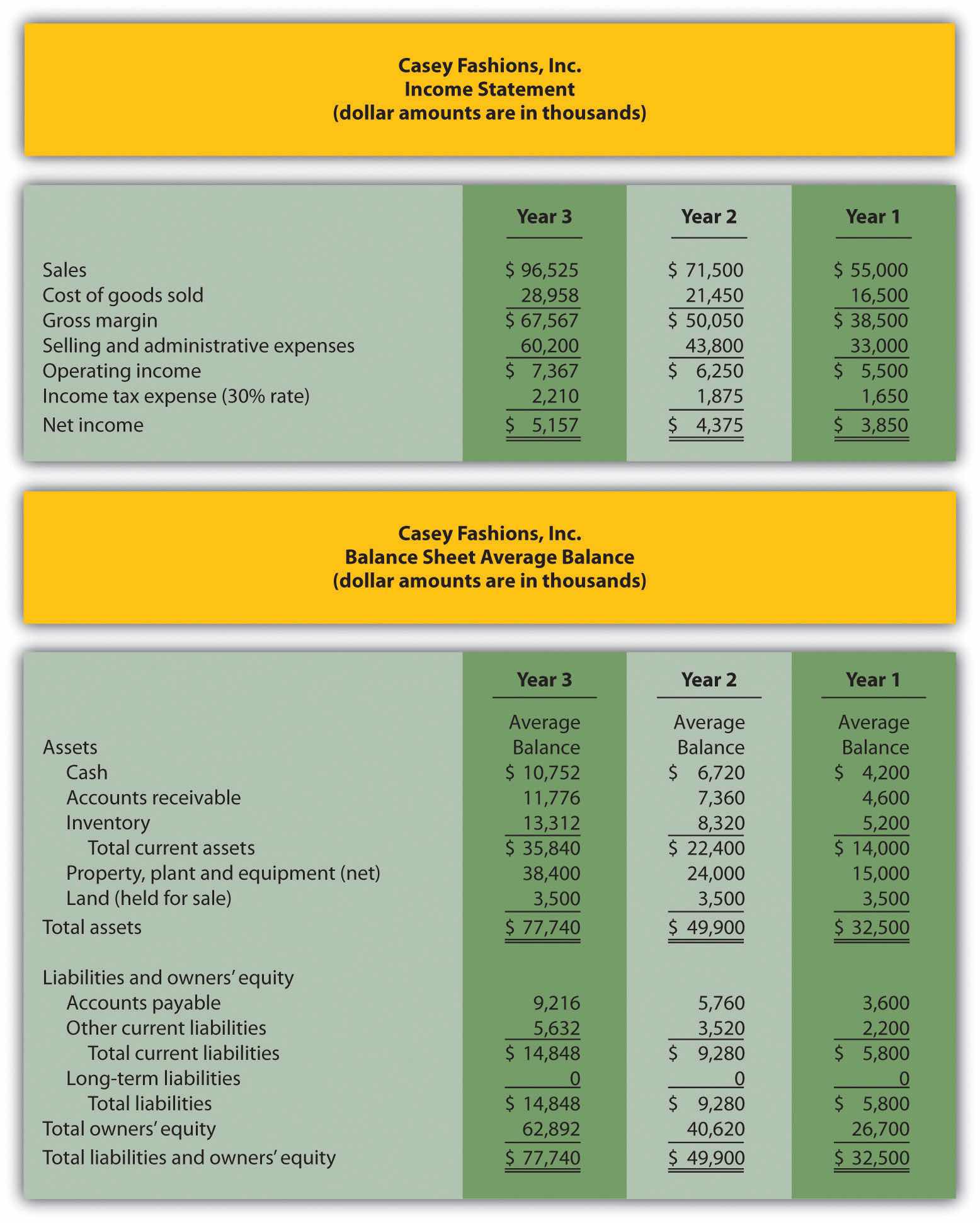 Performance Evaluation Methods. Casey Fashions, Inc., sells clothing throughout North America. The company’s compensation committee, made up of five members from the board of directors, is meeting to discuss the CEO’s contract, which expires next month. The committee is currently reviewing financial information for the three most recent fiscal years: year 3 (most recent), year 2, and year 1 (shown as follows).