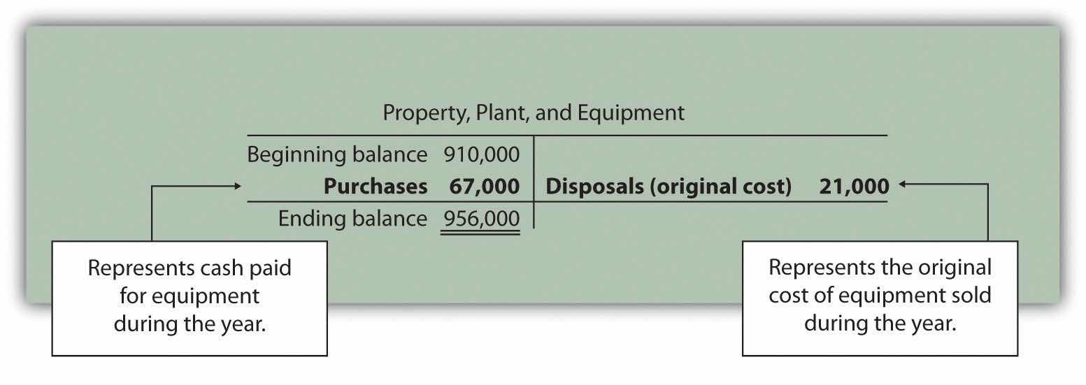Notice the two entries to property, plant, and equipment shown previously. The net effect of these 2 entries is an increase of $46,000 (= $67,000 − $21,000). This is summarized in the following T-account: