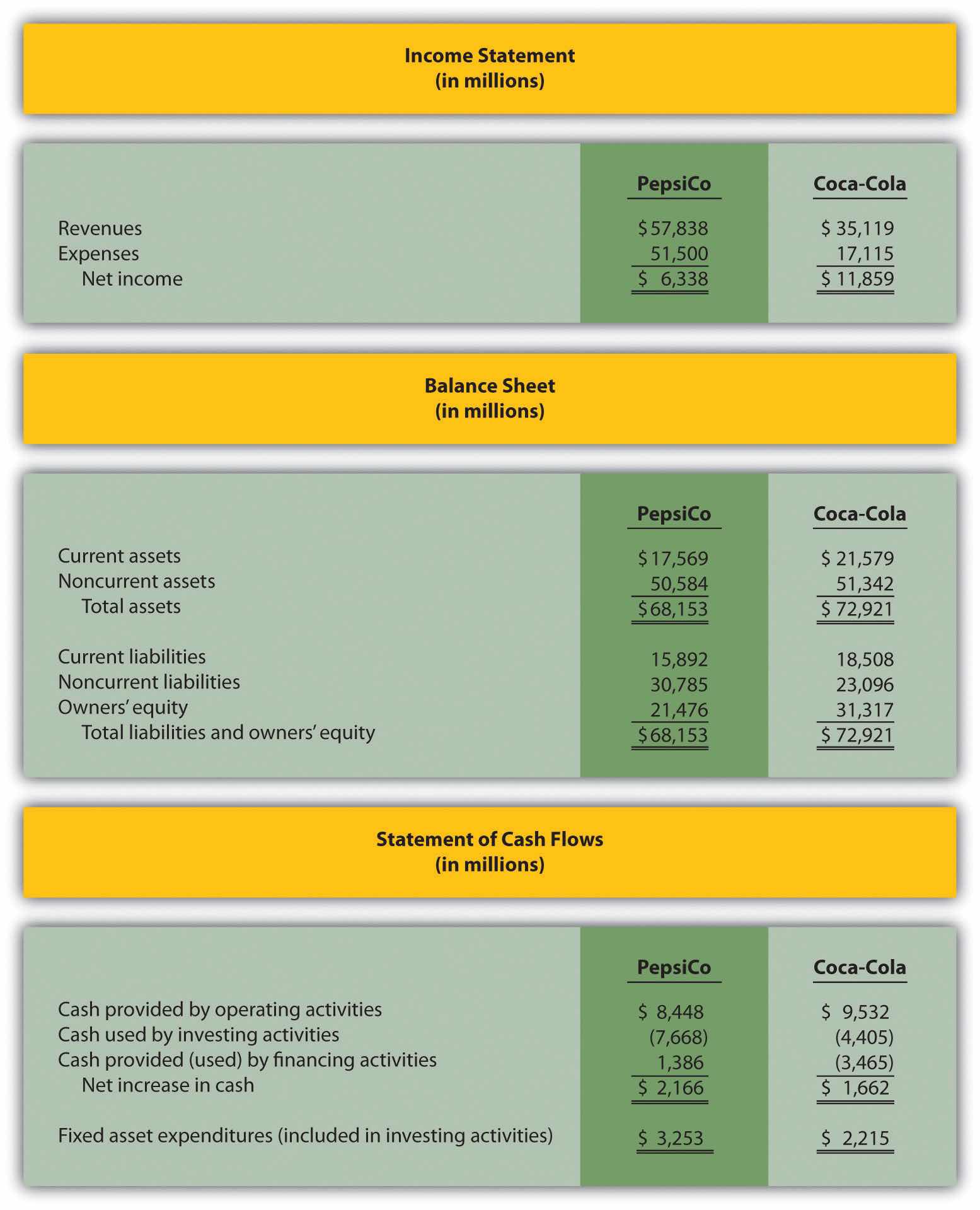 Free cash flow = Cash provided by operating activities − Capital expendituresThe following financial information is for PepsiCo Inc. and Coca-Cola Company for fiscal year 2010.