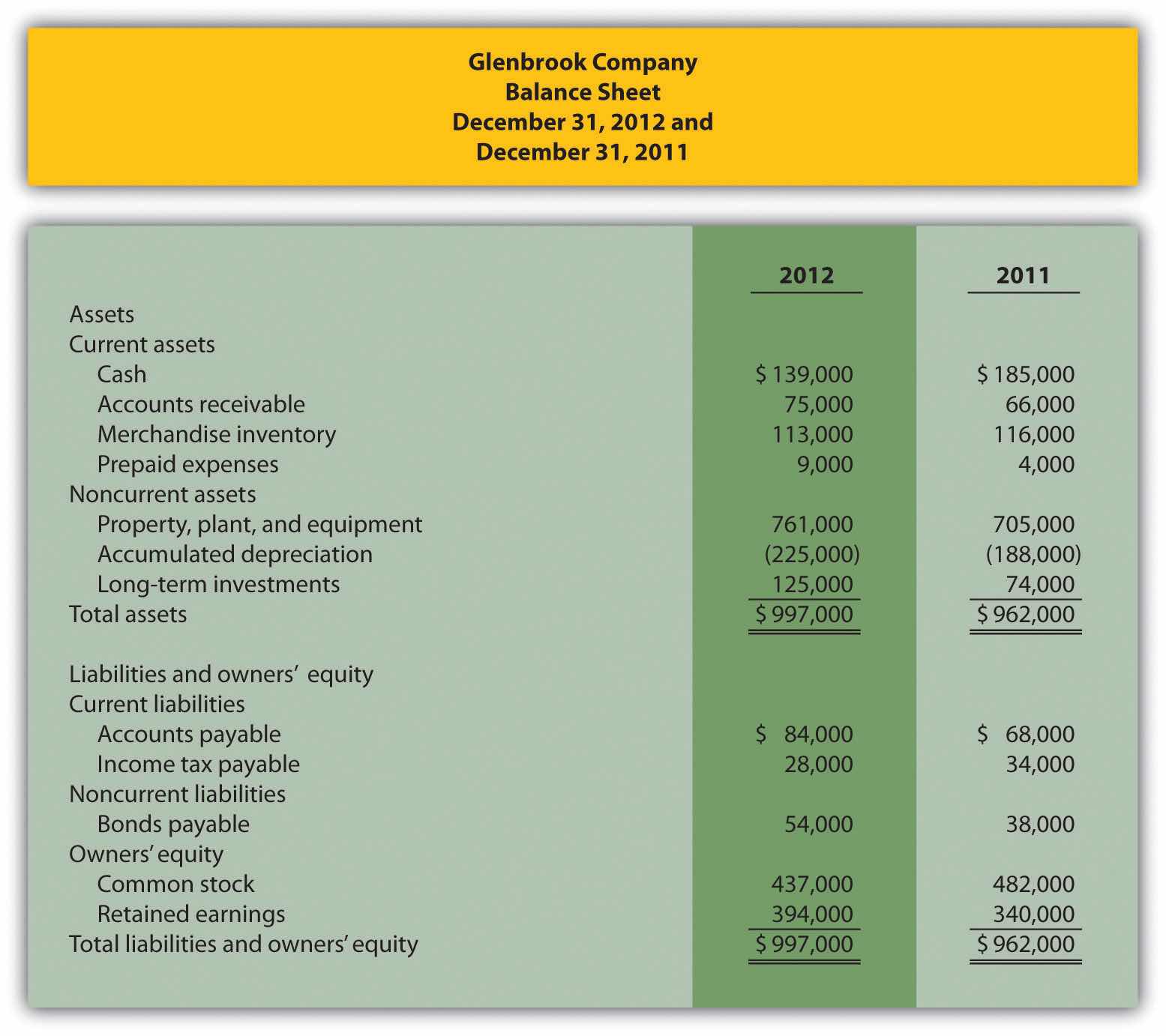 Prepare a Statement of Cash Flows, Indirect Method. Glenbrook Company’s most recent balance sheet, income statement, and other important information for 2012 are presented as follows.