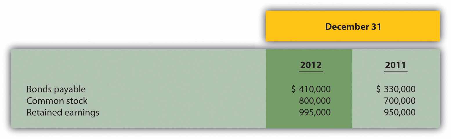Financing Activities Section. The following information is from the noncurrent liabilities and owners’ equity portions of Flash, Inc.’s balance sheet.
