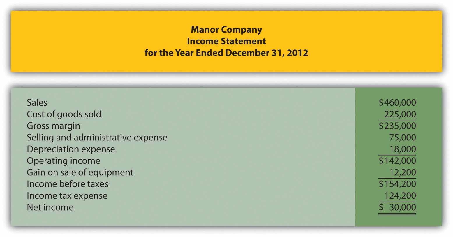 Operating Activities Section Using the Indirect Method. The following income statement and current sections of the balance sheet are for Manor Company.