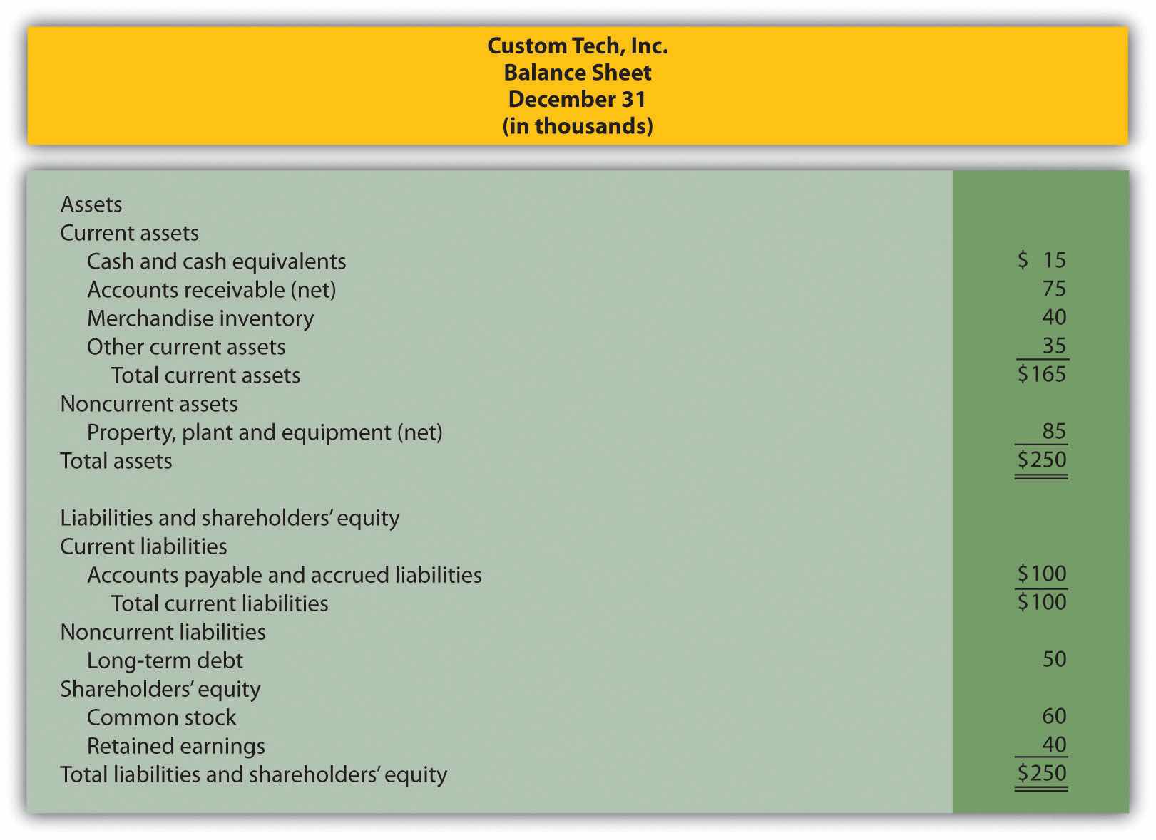 The financial statements shown as follows are for Custom Tech’s most recent year ended December 31. This information has not yet been provided to the bank.
