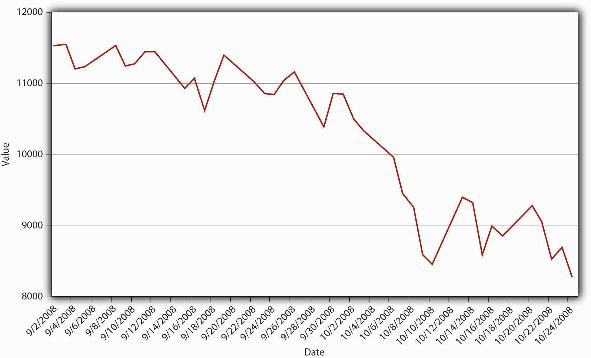 Figure 13.7 Daily closing value of the Dow Jones Industrial Average, September–October 2008